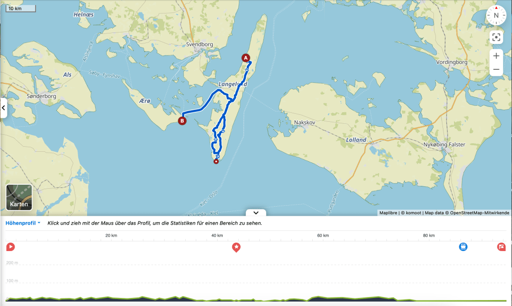 Weiter ging es von nach Langeland. Obwohl Lolland sicher die touristisch deutlich stärker frequentierte Insel ist, gefällt mir Langeland besser. Es geht soweit, dass ich sogar meine bisher doch sehr eingeschränkte Begeisterung für die Ostsee revidiere. Wunderschön hier! Abends dann die Überfahrt auf die Insel AEro.
