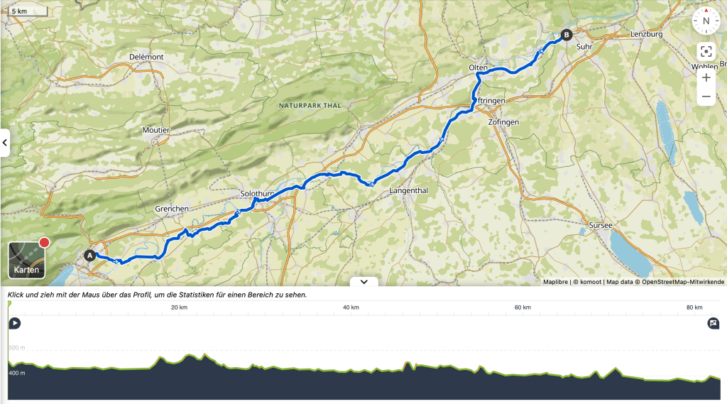 Antwort: noch nicht gemacht….aber geplant. Etappe 8, die von Biel nach Aarau, war eine Spontanidee und so sollte es dann kommen.